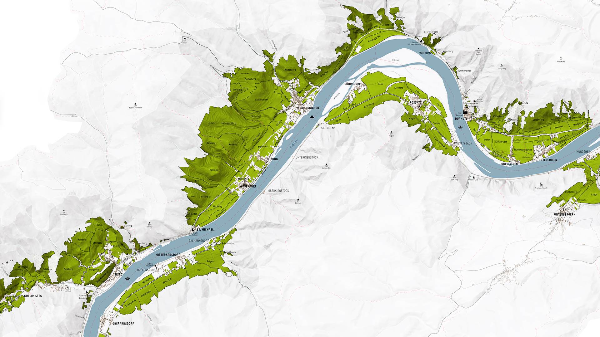An einigen Stellen haben sich deutliche Lössablagerungen angesammelt, die eine gute Nährstoffversorgung bieten und den Weinen Fülle und Kraft verleihen. Verwitterter Paragneis sorgt für Komplexität und Struktur, an den kargeren Stellen zeigt Riesling seine Qualität durch sehr feingliedrige Weine.